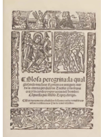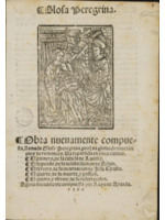 Glosa peregrina. Obra nuevamente hecha intitulada glosa peregrina porque va glosando diversos pies de romances. Va repartida en cinco cánticos. El primero de la caída de Lucifer. El segundo de la desobediencia de Adam. El tercero de la encarnación de Jesucristo. El cuarto de su muerte y pasión. El quinto y último de su resurrección. Agora nuevamente compuesta por Luis de Aranda. 1561.