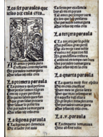 18 h. in-4.º, a 2 cols. y a 1 col., letra gótica. Con portada, ilustración.