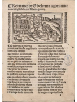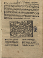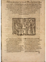 12 h. in-4.º, a 2 cols. y a 1 col., letra gótica. Con portada, ilustración.