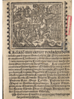 Relación del espantable temblor y tempestad de rayos, que ahora ha sucedido en el mes de enero próximo pasado desde año setenta y uno en la ciudad de Ferrara. E juntamente como en Flandes se anegaron de una creciente siete villas y lugares. Compuesto en verso castellano por Bartolomé de Flores natural de Málaga y vecino de Córdoba. Impreso en la villa de Martinmuñoz (sic.) por Lorencio de Soto. M. D. LXXj.
