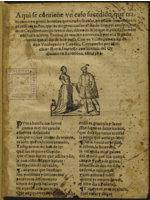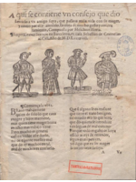 Aquí se contiene un caso sucedido que trata cómo un gentil hombre queriéndose casar no osaba temiendo los excesivos gastos que las mujeres causan el día de hoy, y el consejo que otro caballero amigo suyo le dio, diciéndole lo que había de suceder en el casamiento. Es obra de mucho contento y por ella se podrá ver lo que al día de hoy pasa. Con un villancico a la fin de don Verdugado y Copete. Compuesto por Melchior Horta. Impreso con licencia del Ordinario en Barcelona, año 1589.