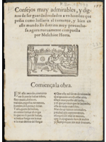 Consejos muy admirables y dignos de ser guardados a un hombre que pedía cómo hallaría el contento y bien en este mundo. Es doctrina muy provechosa, agora nuevamente compuesta por Melchior Horta.