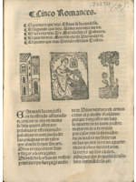 Cinco Romances. El primero, que dice: 'Estábase la condesa'; el segundo, que dice: 'Vámonos, dixo mi tío'; el tercero dice: 'De Mérida sale el Palmero'; el cuarto dice: 'Muerto queda Durandarte'; el quinto, que dice: 'Herido está don Tristán'.